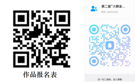 关注学院官方公众号,转发本次大赛推送至朋友圈,4月17日完成进群+填写作品报名表(二维码)。4月25日24:00 前,将短视频作品打包发送至指定邮箱 1283655822@qq.com,压缩包命名为【作品名称 + 作者 / 团队 + 所属学院 + 联系电话】,邮件主题同压缩包命名。
