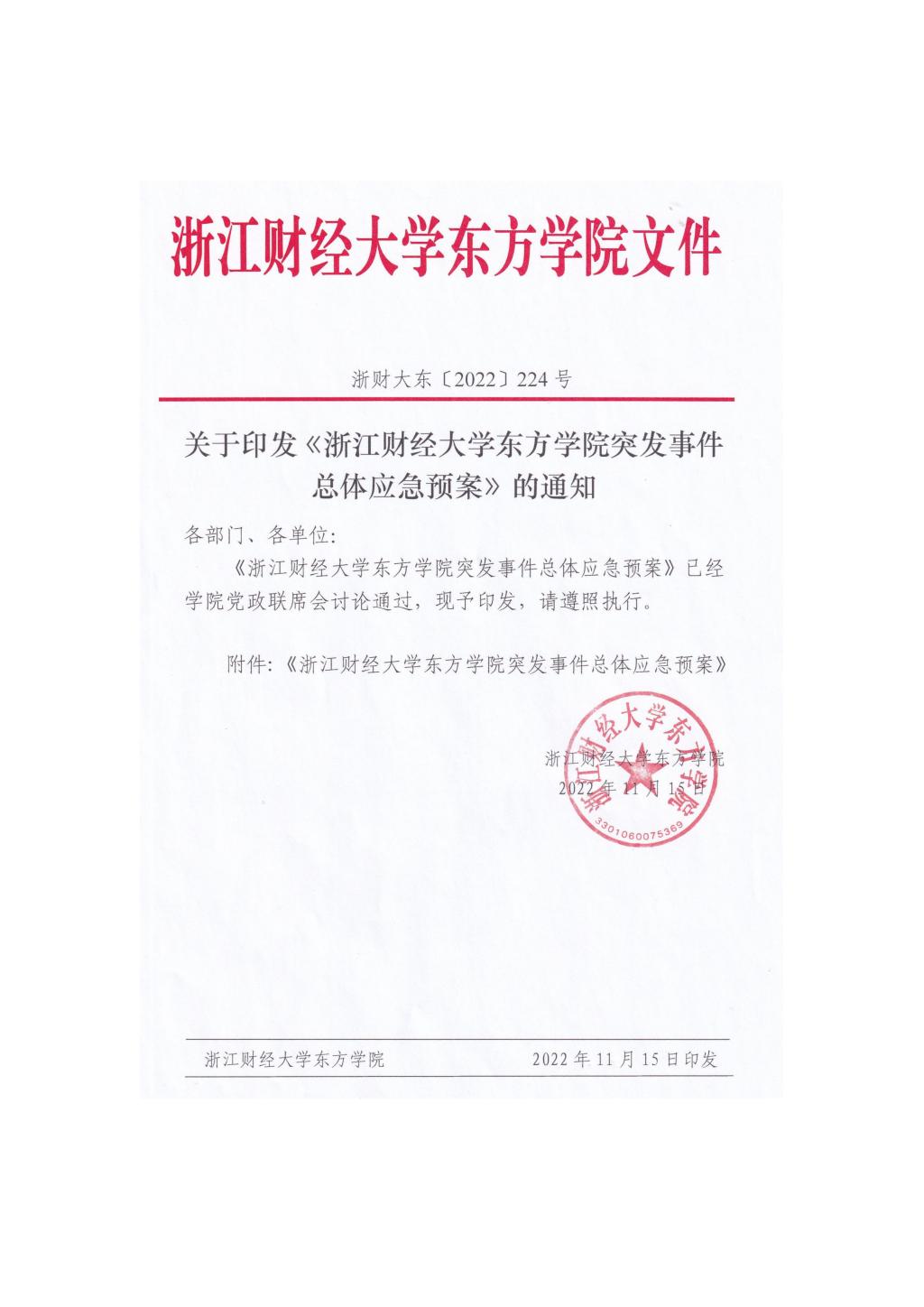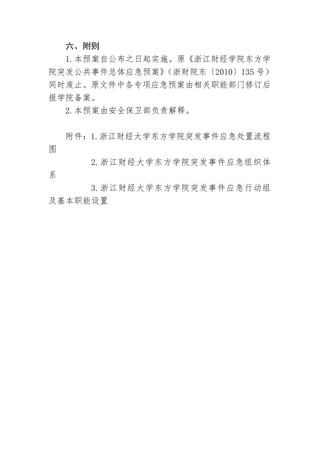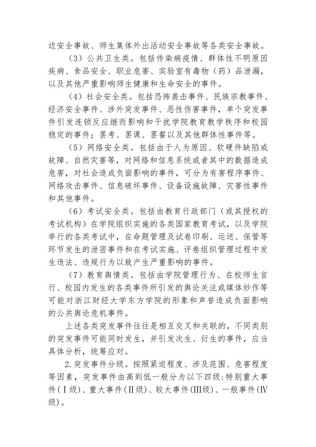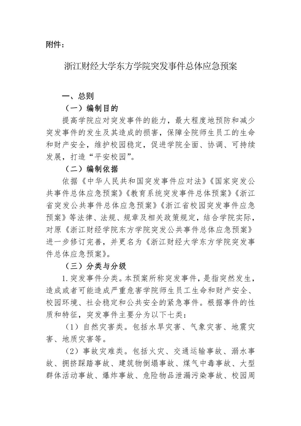 浙江财经大学东方学院突发事件总体应急预案