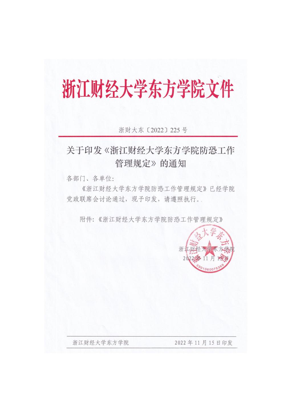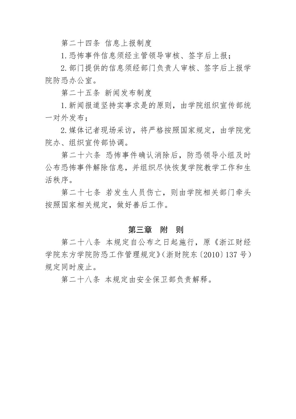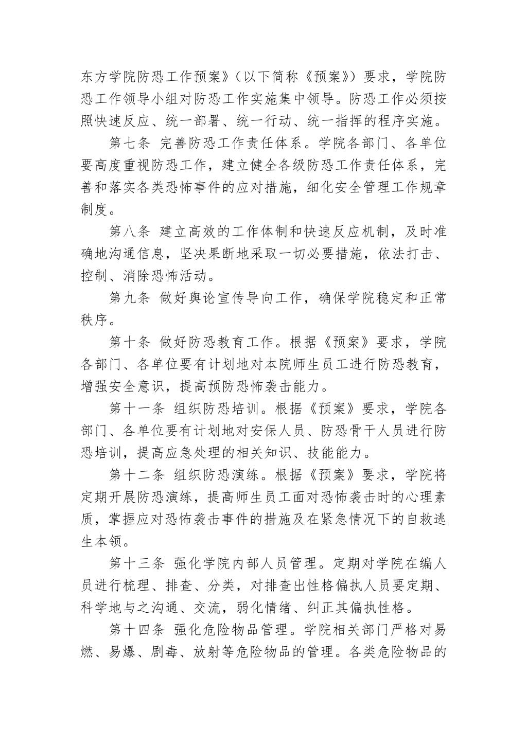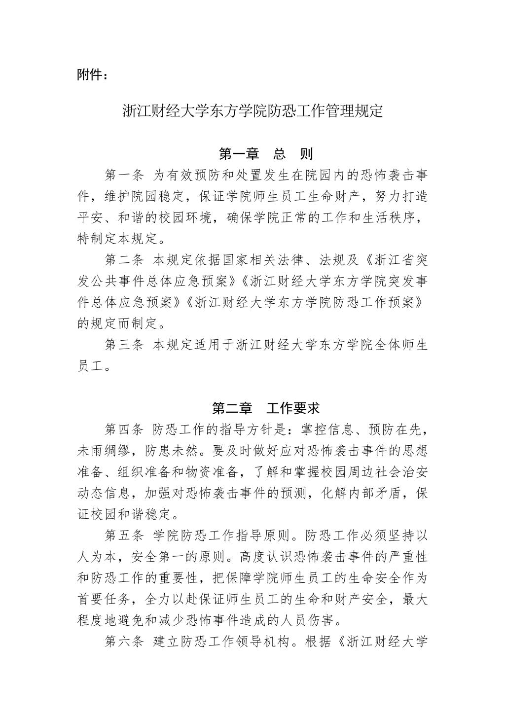 浙江财经大学东方学院防恐工作管理规定