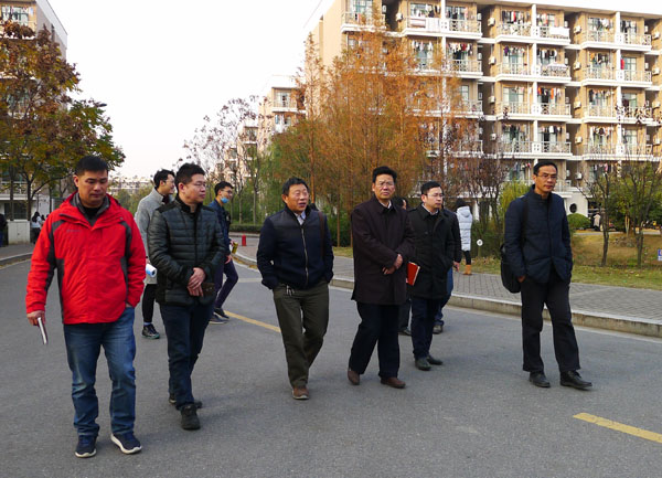 沃健院长代表学校对励校长一行的到来表示欢迎。王记清副院长从责任机制、主要工作举措、特色创新、工作成效四个方面,对我院“平安校园”建设工作情况作了具体的汇报,重点汇报了责任落实、检查督查、安全宣传、内部工作配合、与当地行政职能部门联动等工作的做法和举措。查阅台账后励校长对学院消监控室、宿舍、食堂等进行了仔细的检查,重点查看了学院的监控设施、消防设施等物防技防设施配置情况,并就校园的安全宣传、防范措施、排查整改等情况进行了深入的指导。