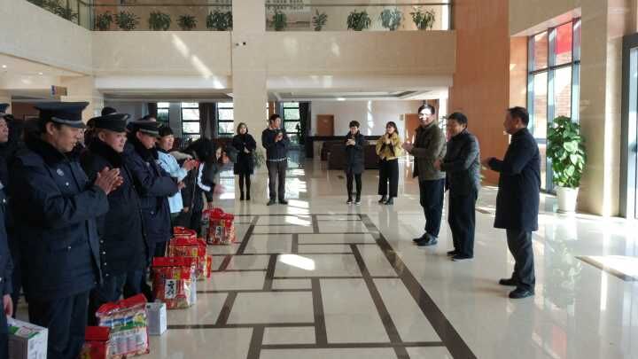 1月20日下午,我院院长沃健、副院长王记清、副院长金国锋在相关部门负责人的陪同下慰问了寒假期间仍坚守工作岗位的安保工作人员。