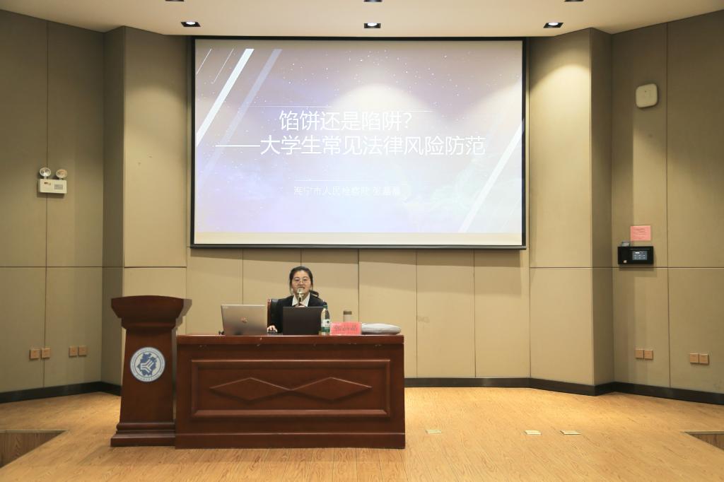 10月28日,我院联合海宁市人民检察院举办第九次平安共建日主题活动。本次活动以 “大学生常见法律风险防范与志愿平台推广”为主题,邀请市检察院第六检察部主任张晶晶为法社学院同学作专题讲座。