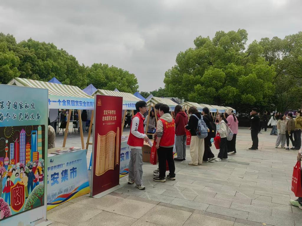 海宁市委政法委、市委社工部、市国安办等单位在一食堂小广场举办安全教育集市,通过互动体验、知识宣讲等形式,全方位、多角度普及国家安全知识,推动安全教育宣传走深走实。